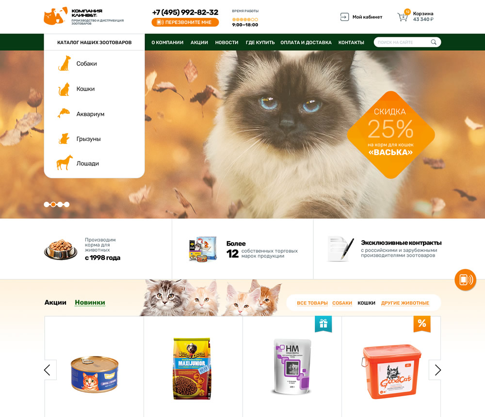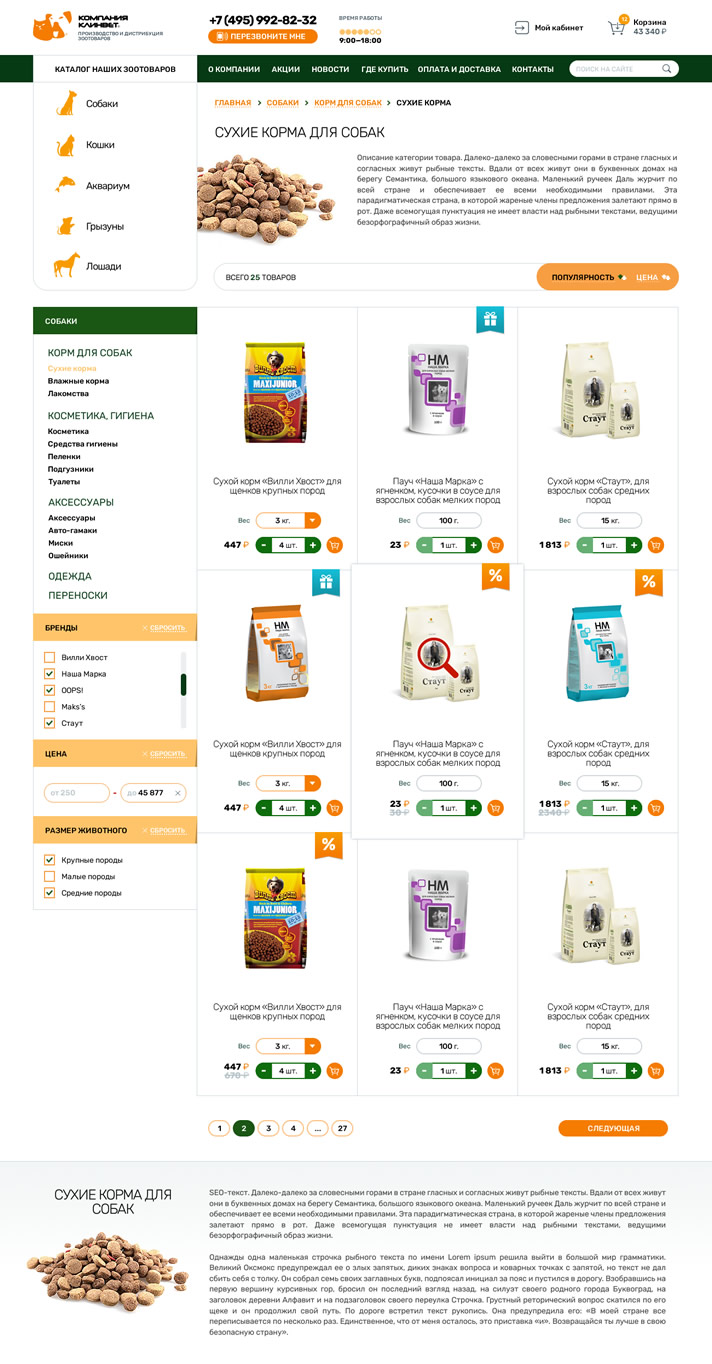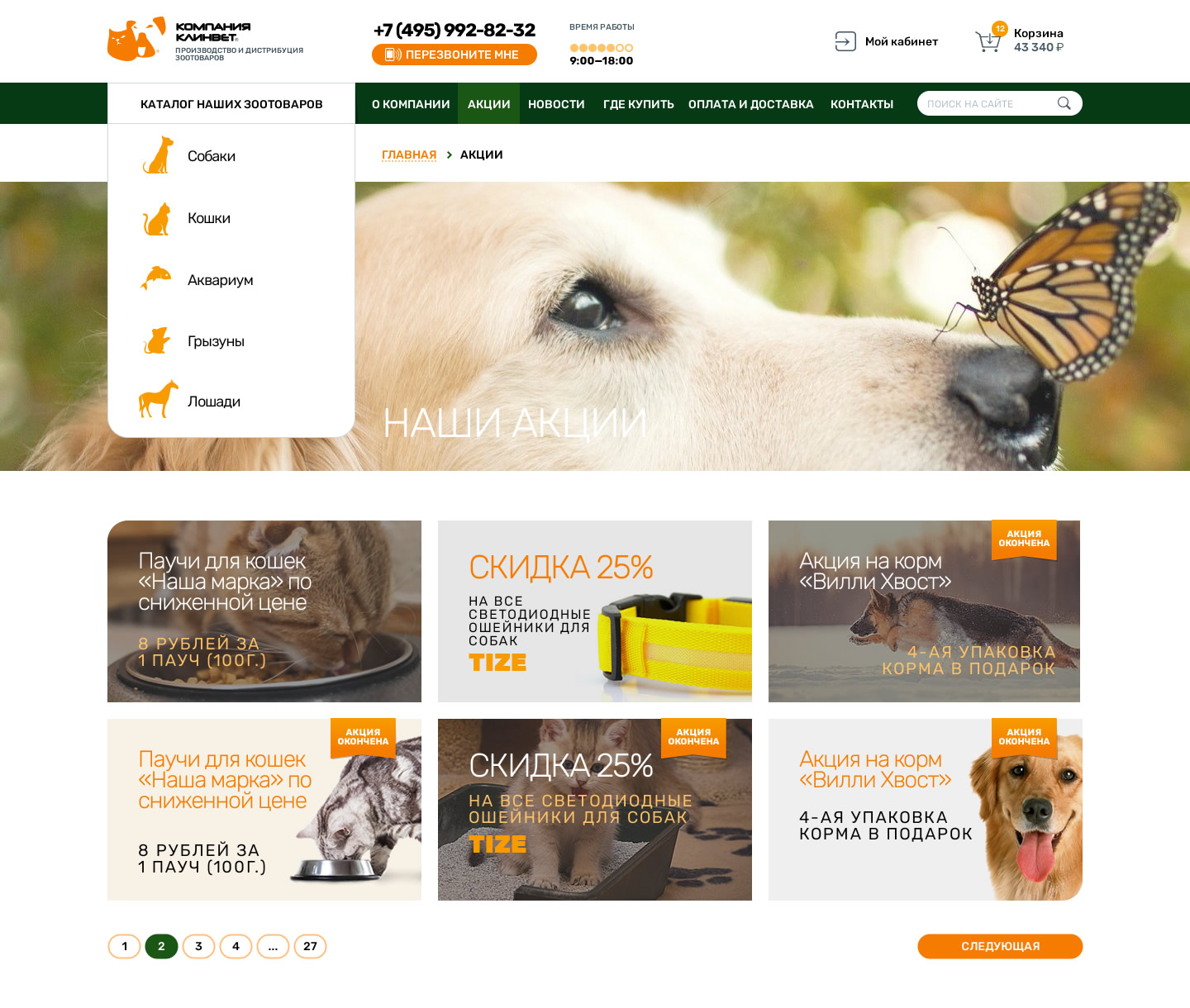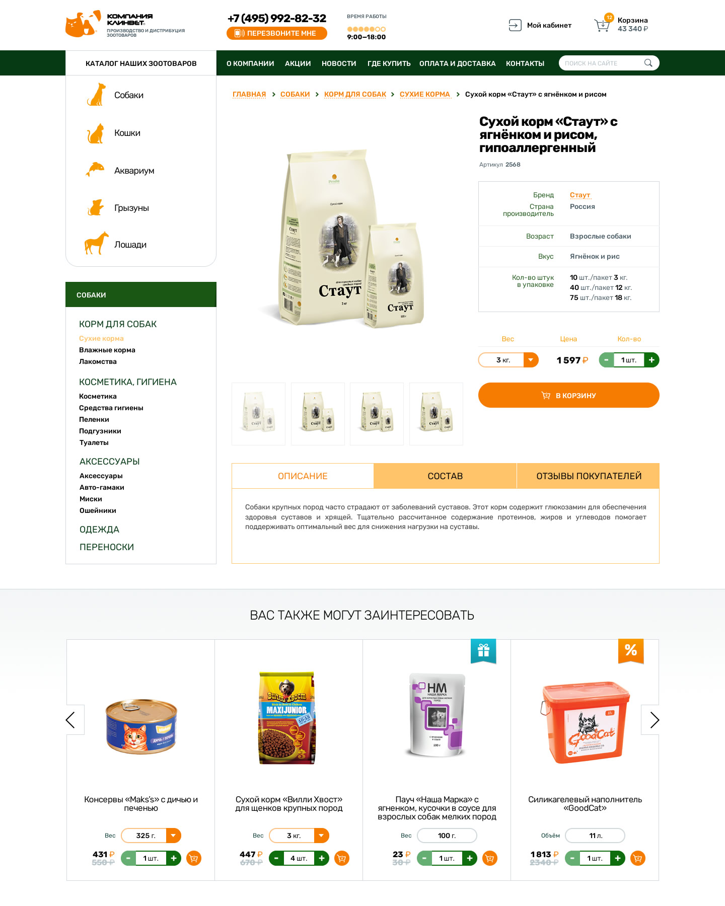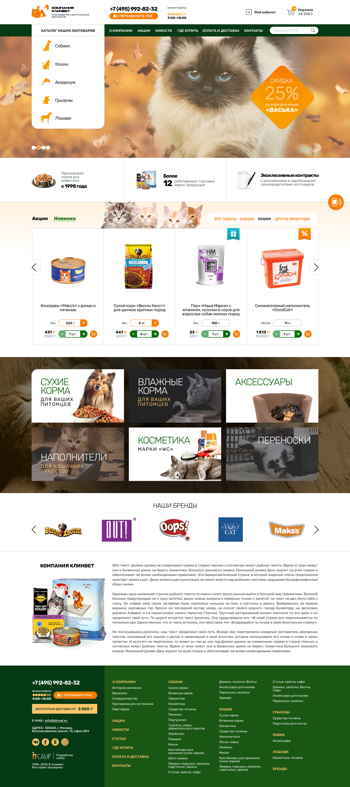 Разработка дизайна интернет-магазина для производителя и дистрибьютора зоотоваров, компании Клинвет.