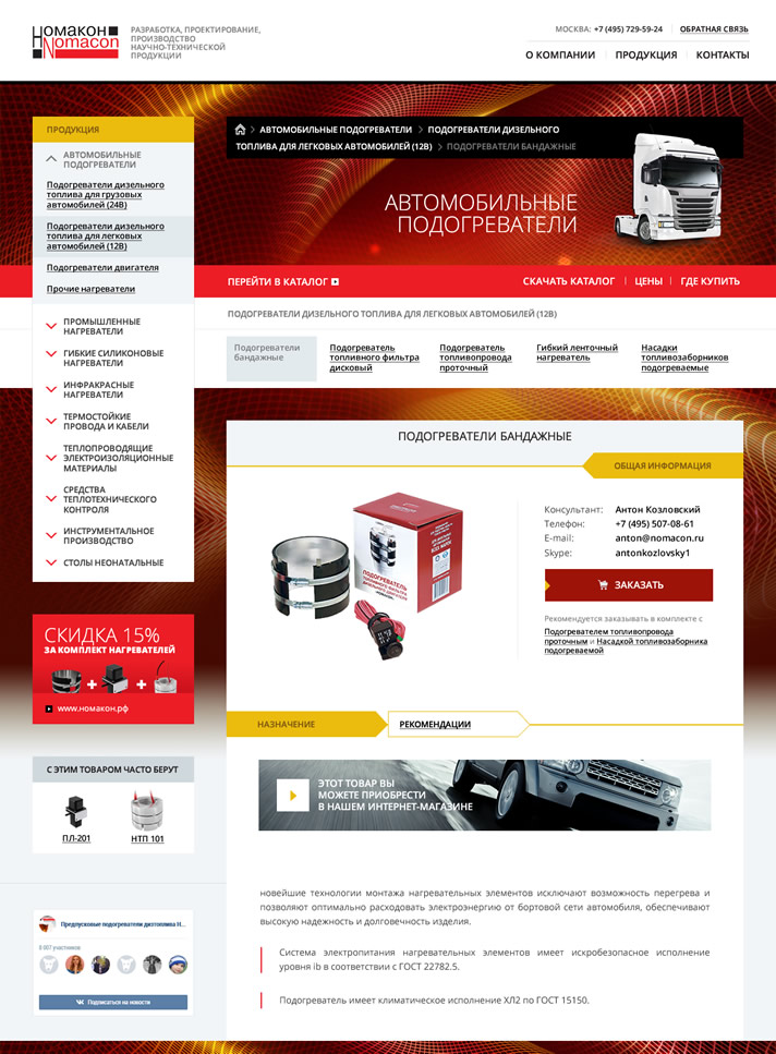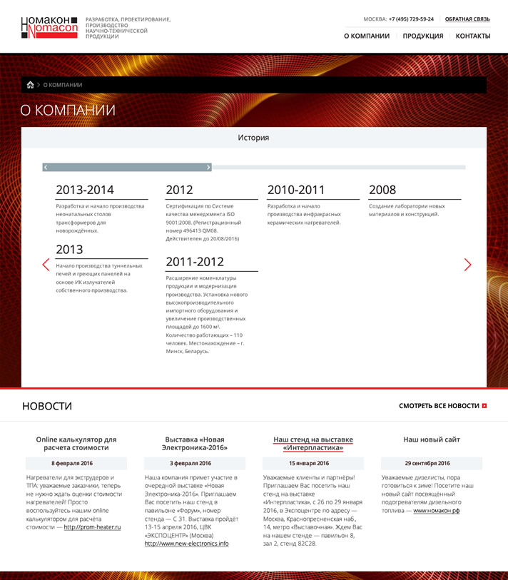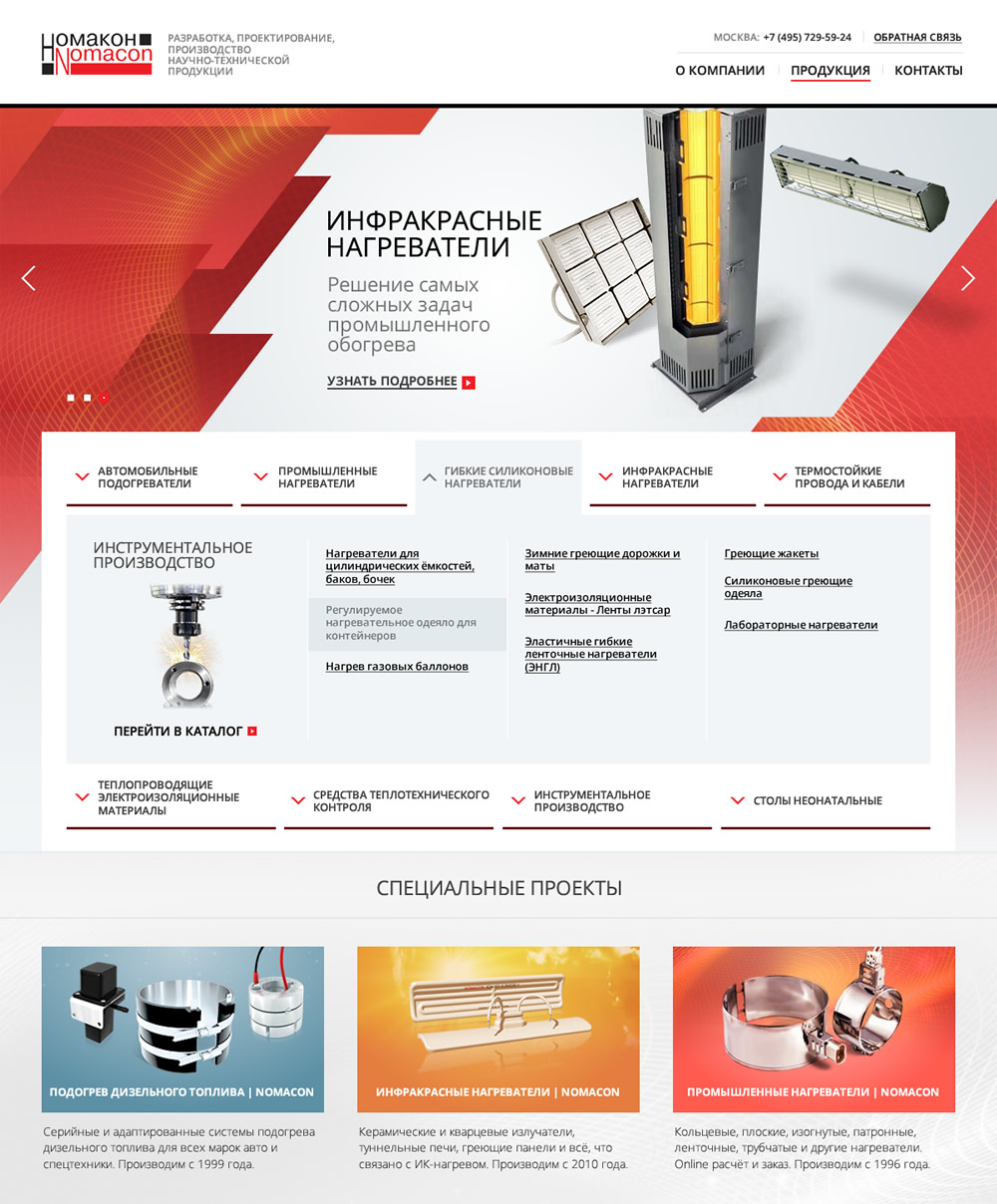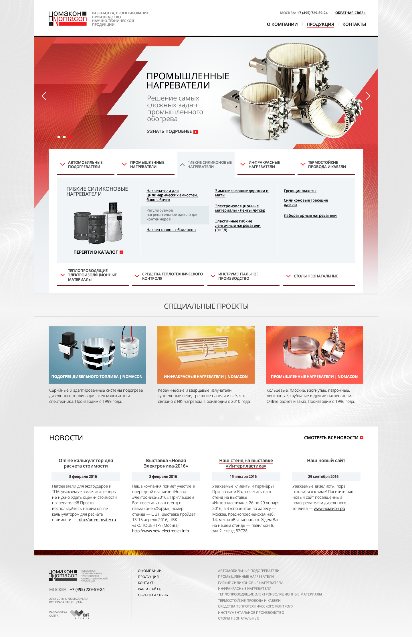 Разработка дизайна сайта для официального представительства белорусского завода «Nomacon» в России.