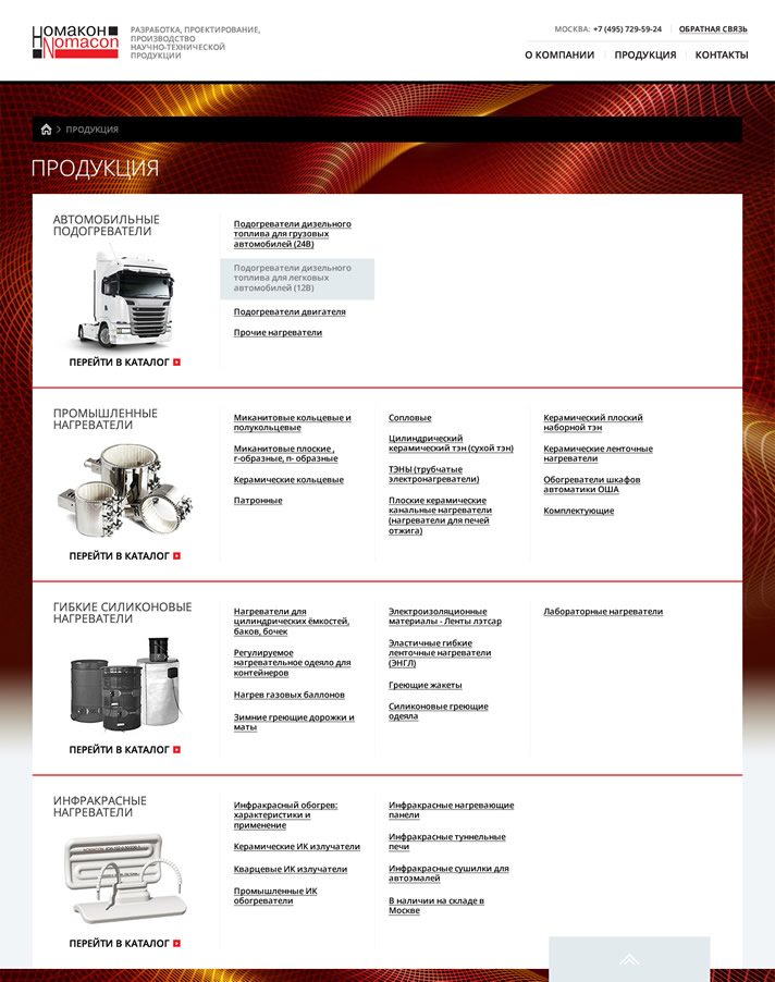 От сайта требовалось, в первую очередь, информативно и доступно представить весь обширный каталог продукции завода.