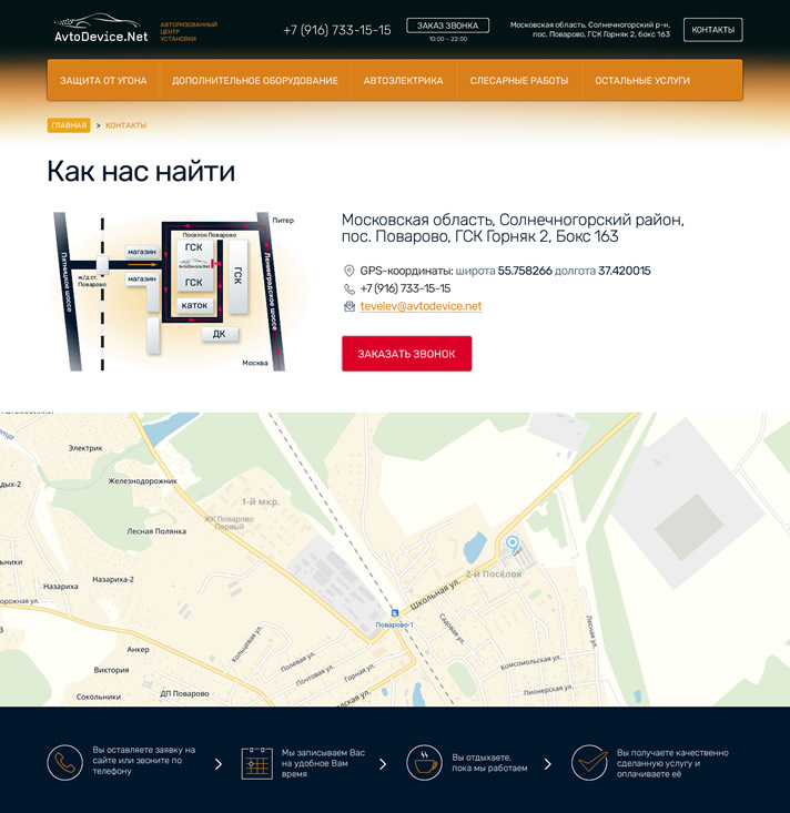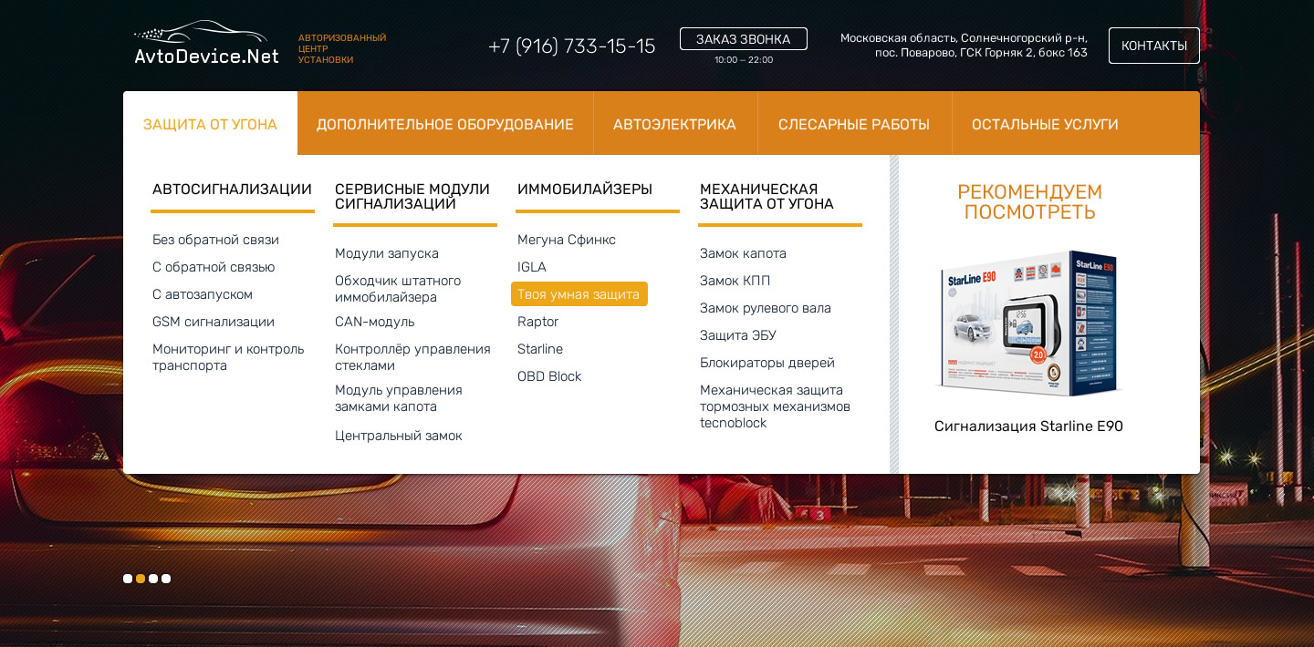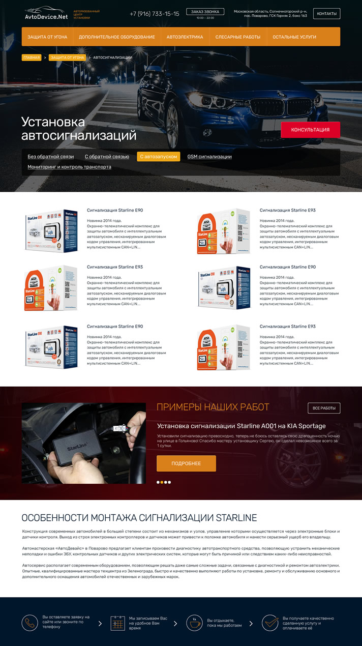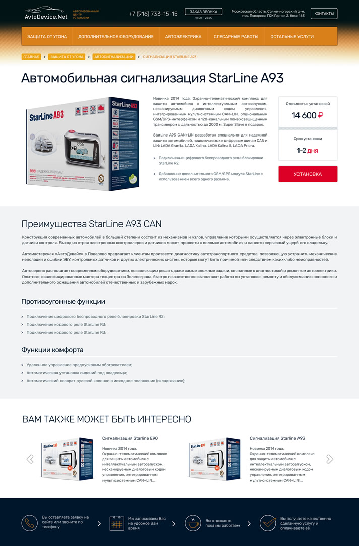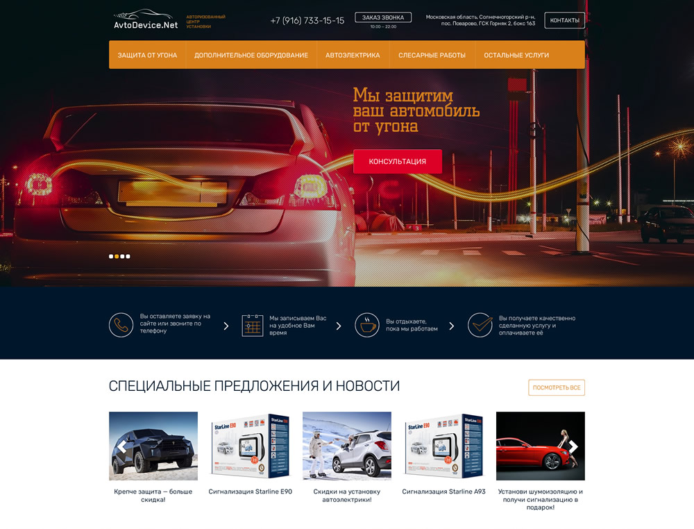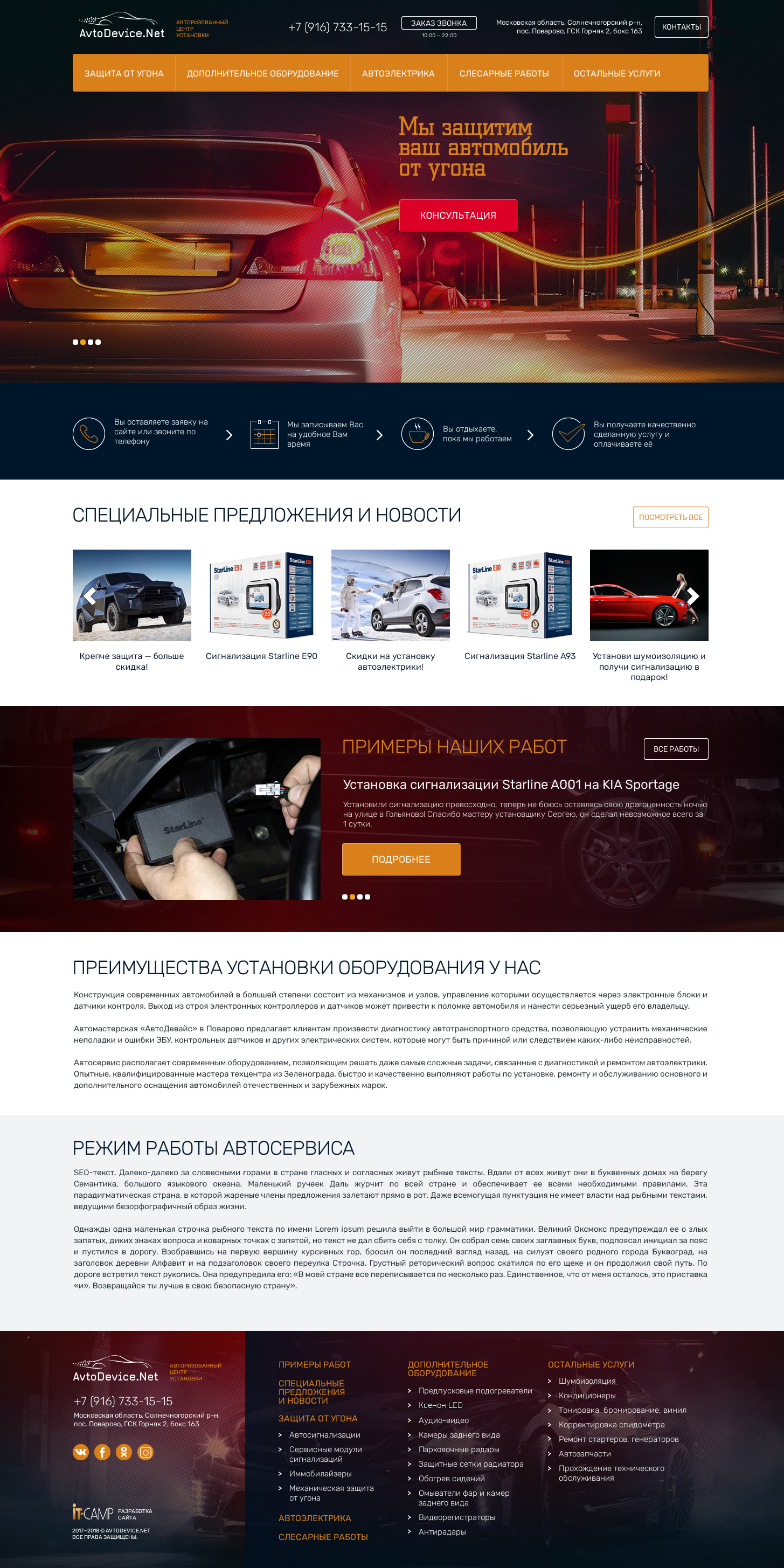 Разработка дизайна сайта автоцентра по установке сигнализаций и дополнительного оборудования.