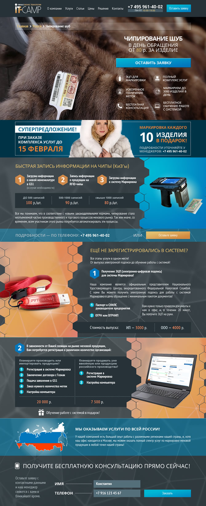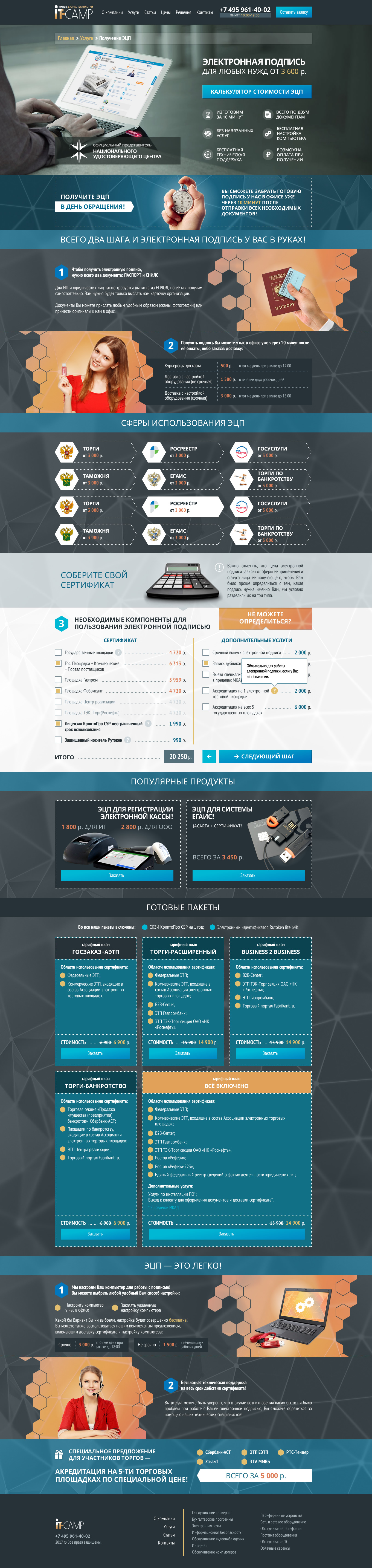 «IT-CAMP» — многопрофильная компания, оказывающая широкий спектр IT-услуг — от разработки сайтов и SEO до выпуска электронных цифровых подписей, маркировки меховых изделий и абонентского компьютерного обслуживания.