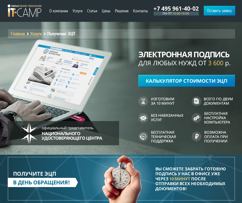 «IT-CAMP» — многопрофильная компания, оказывающая широкий спектр IT-услуг — от разработки сайтов и SEO до выпуска электронных цифровых подписей, маркировки меховых изделий и абонентского компьютерного обслуживания.