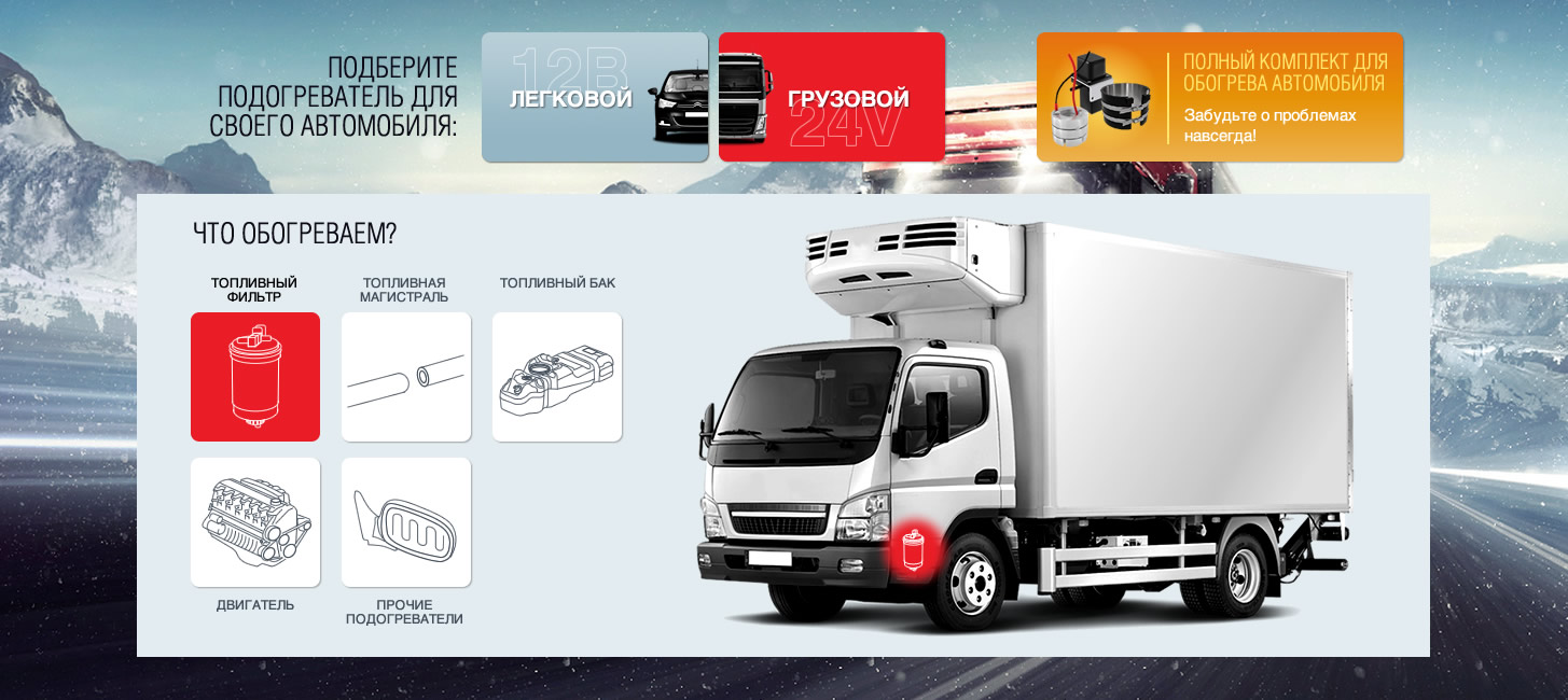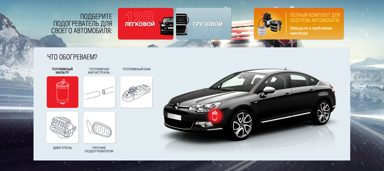 Для удобства выбора необходимого оборудования, на сайте был придуман визуальный подбор, с помощью которого посетитель сразу видит, какая область автомобиля будет обогреваться. Потребовалось и отрисовать схематические иконки для каждой из этих областей.
