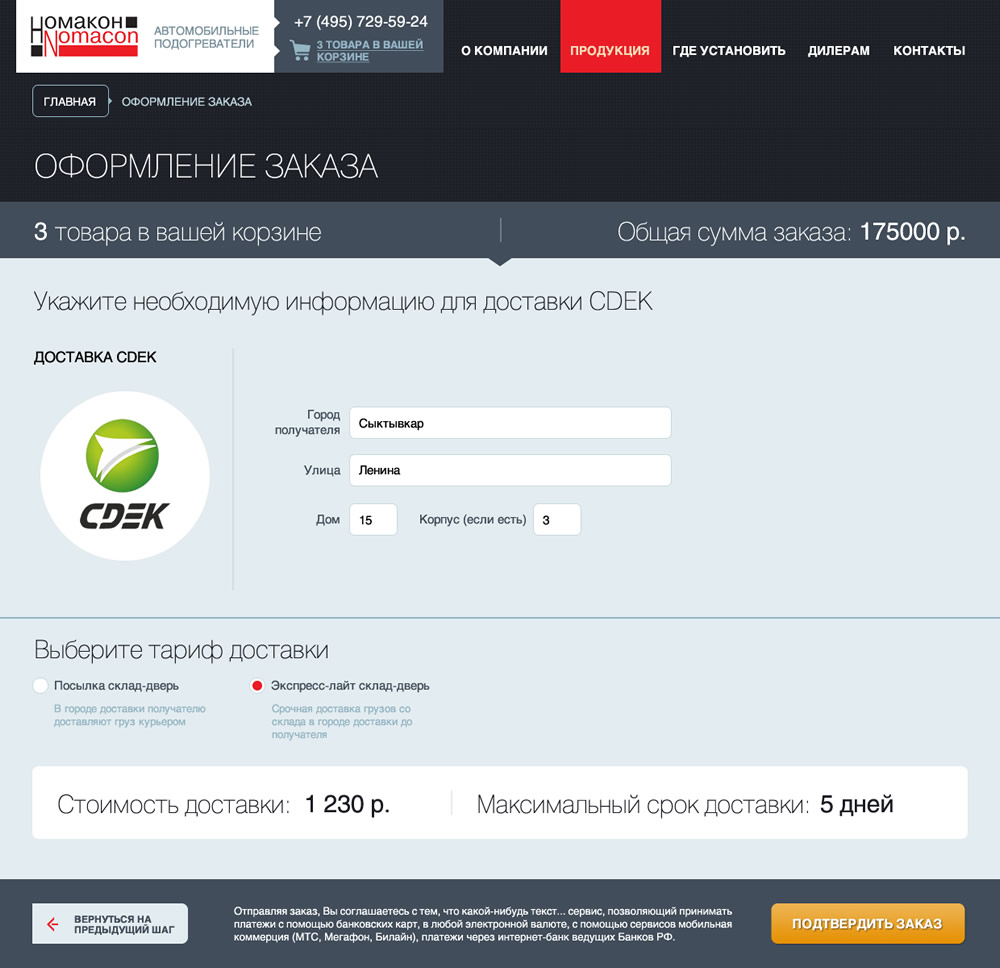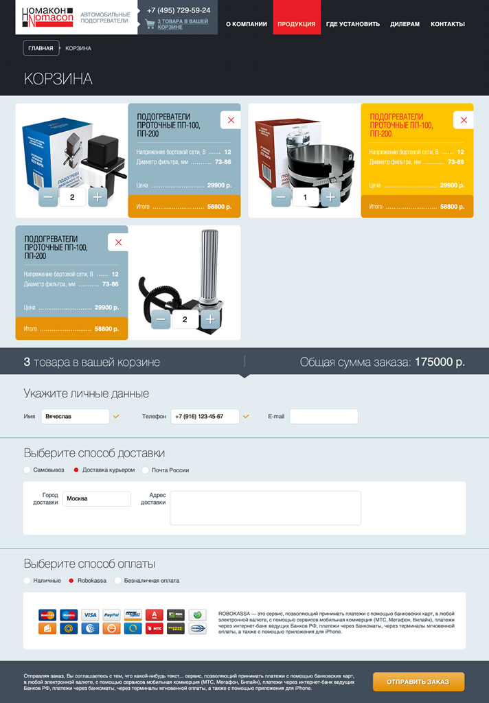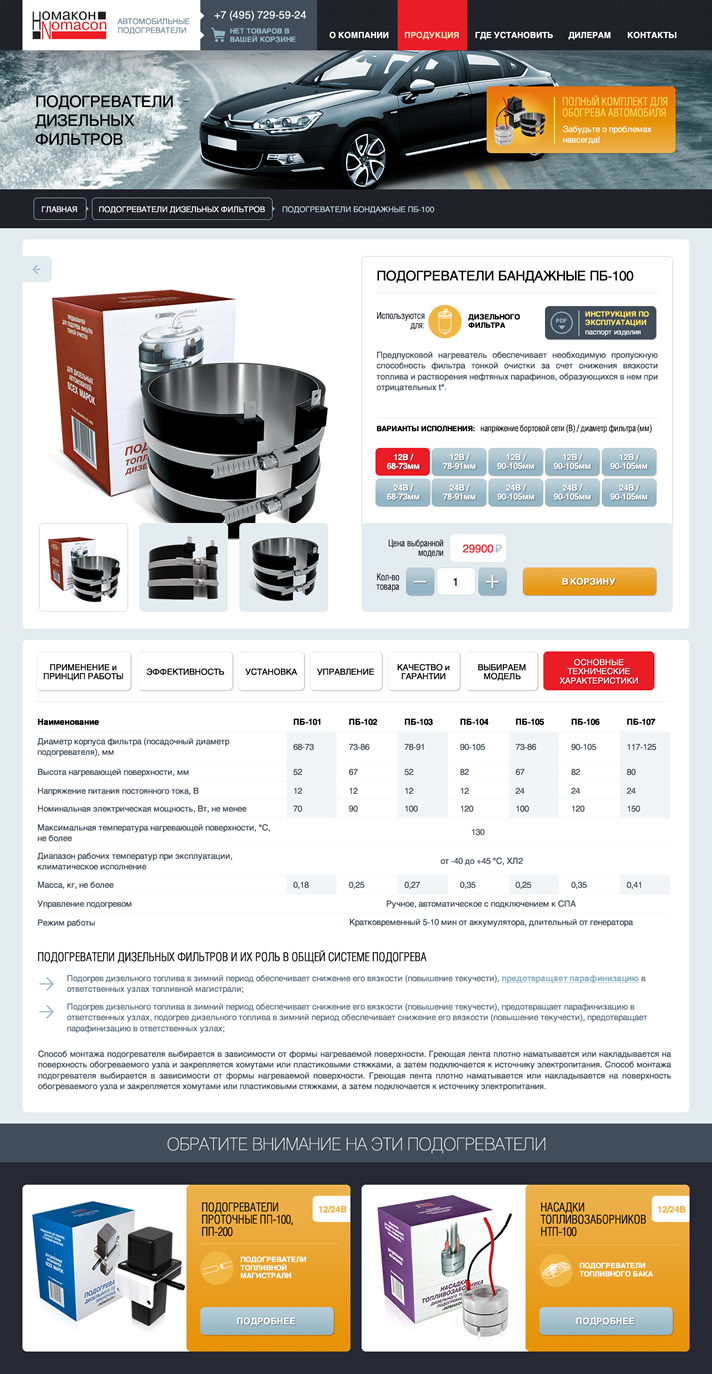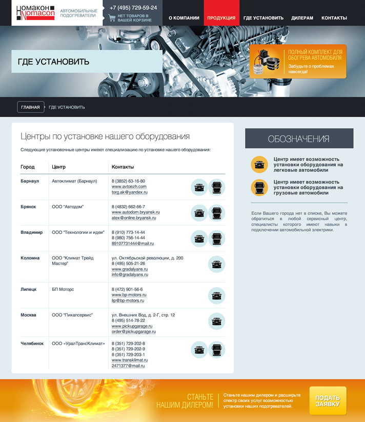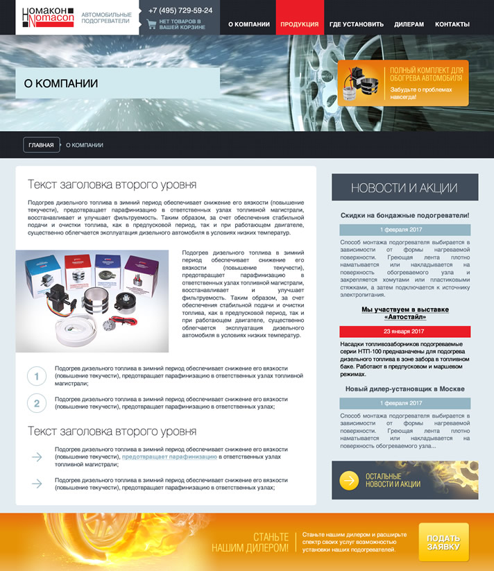 Разработка дизайна сайта интернет-магазина автомобильных подогревателей производства «Nomacon».
