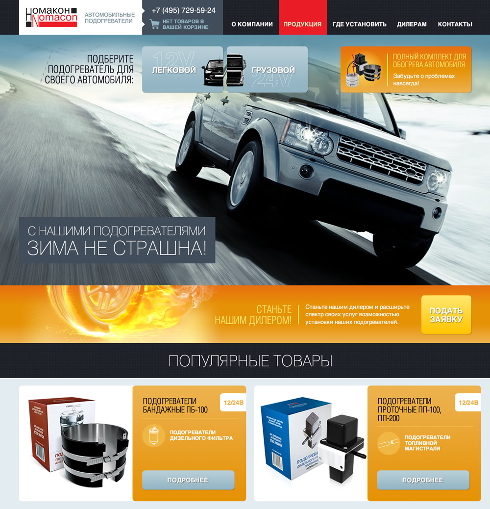 Разработка дизайна сайта интернет-магазина автомобильных подогревателей производства «Nomacon».