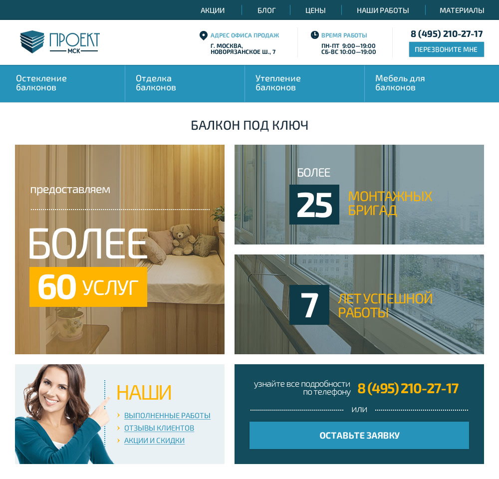 Разработка нового дизайна сайта для компании, занимающейся ремонтом и отделкой балконов и лоджий.